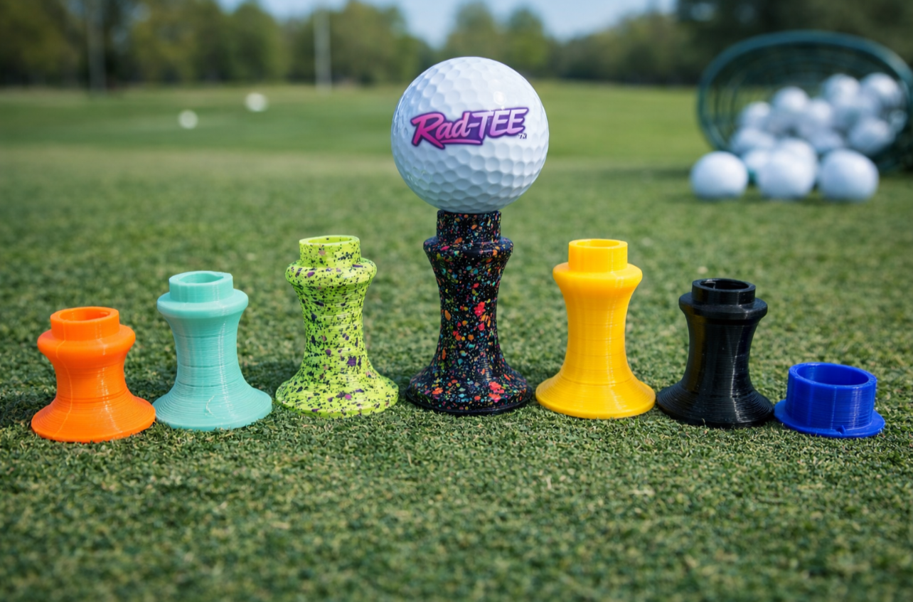 Proudly made in Dartmouth, Nova Scotia, RadTee simulator tees are tested and being used currently in local Halifax simulator facilities and built for real use. Printed in flexible TPU, they flex on impact to handle repeated strikes while helping protect your clubs and maintain consistent ball position.